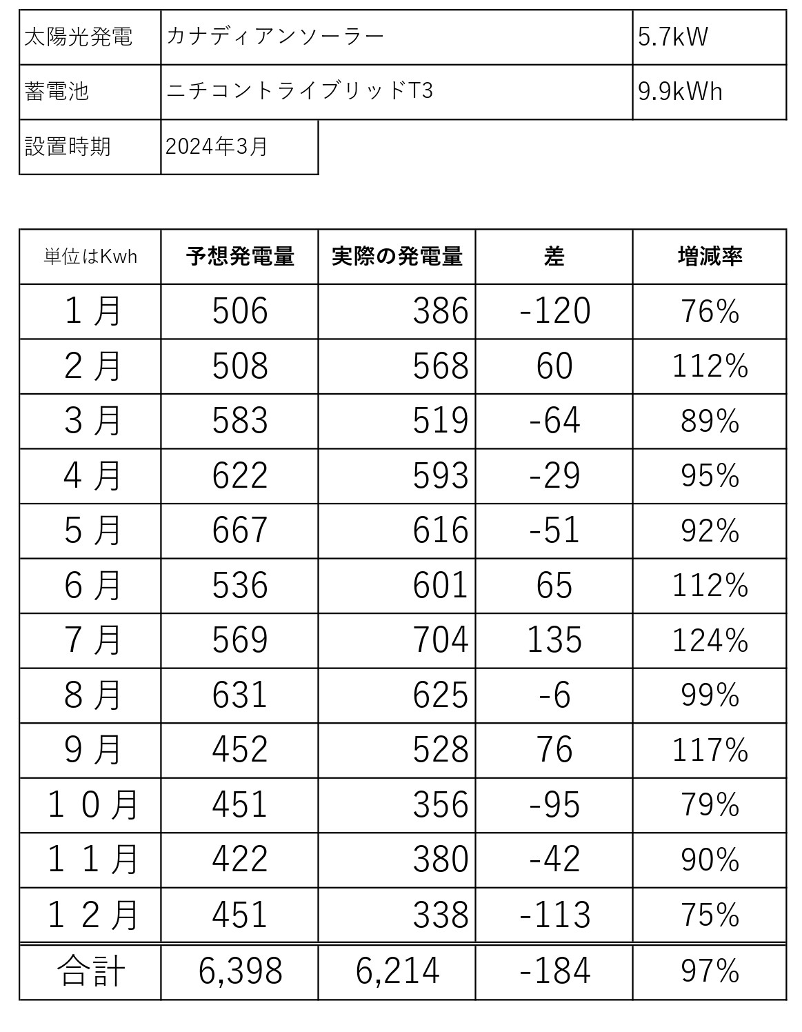 年間発電予測:6,398kWh