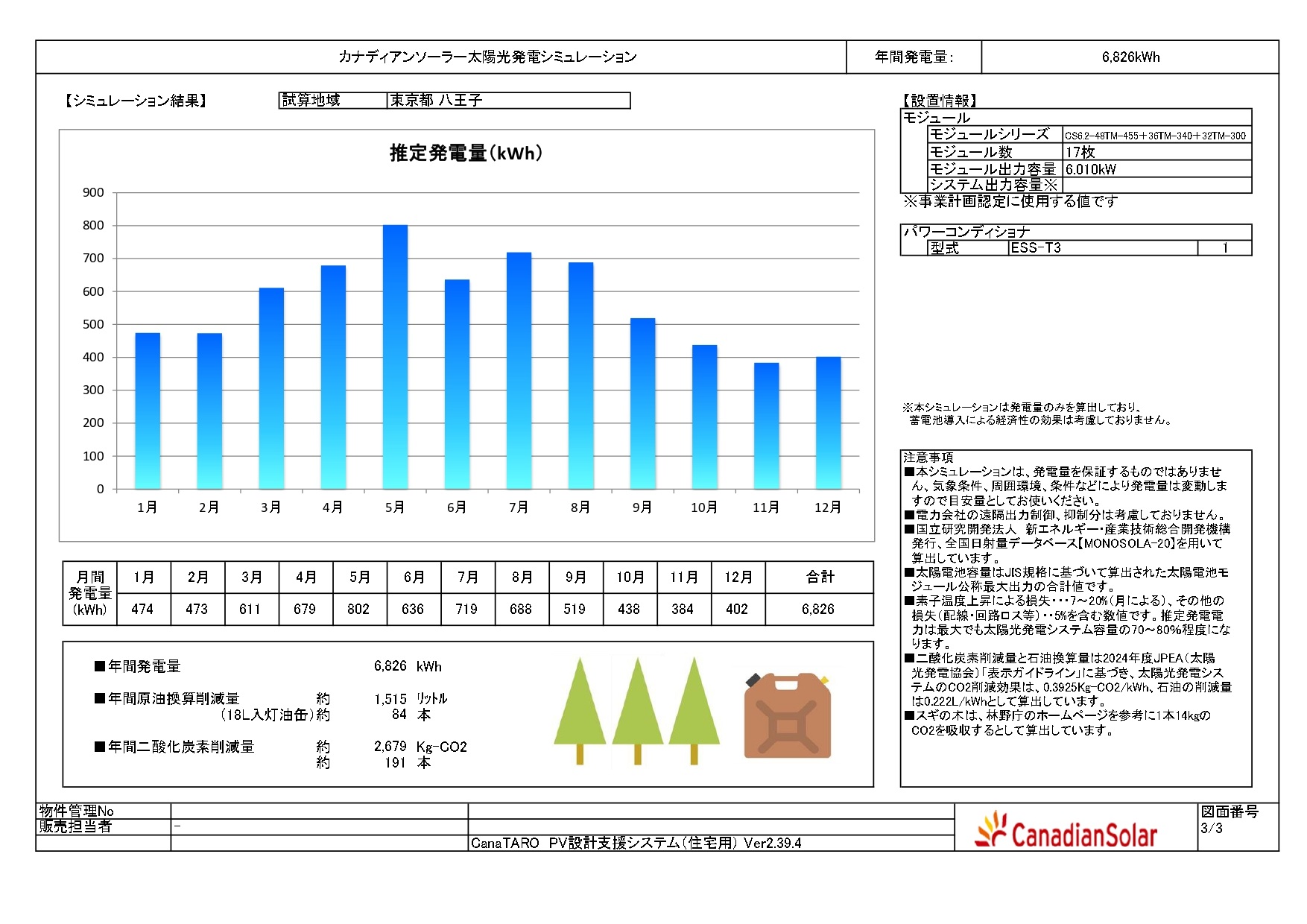 年間発電予測:6,826kWh